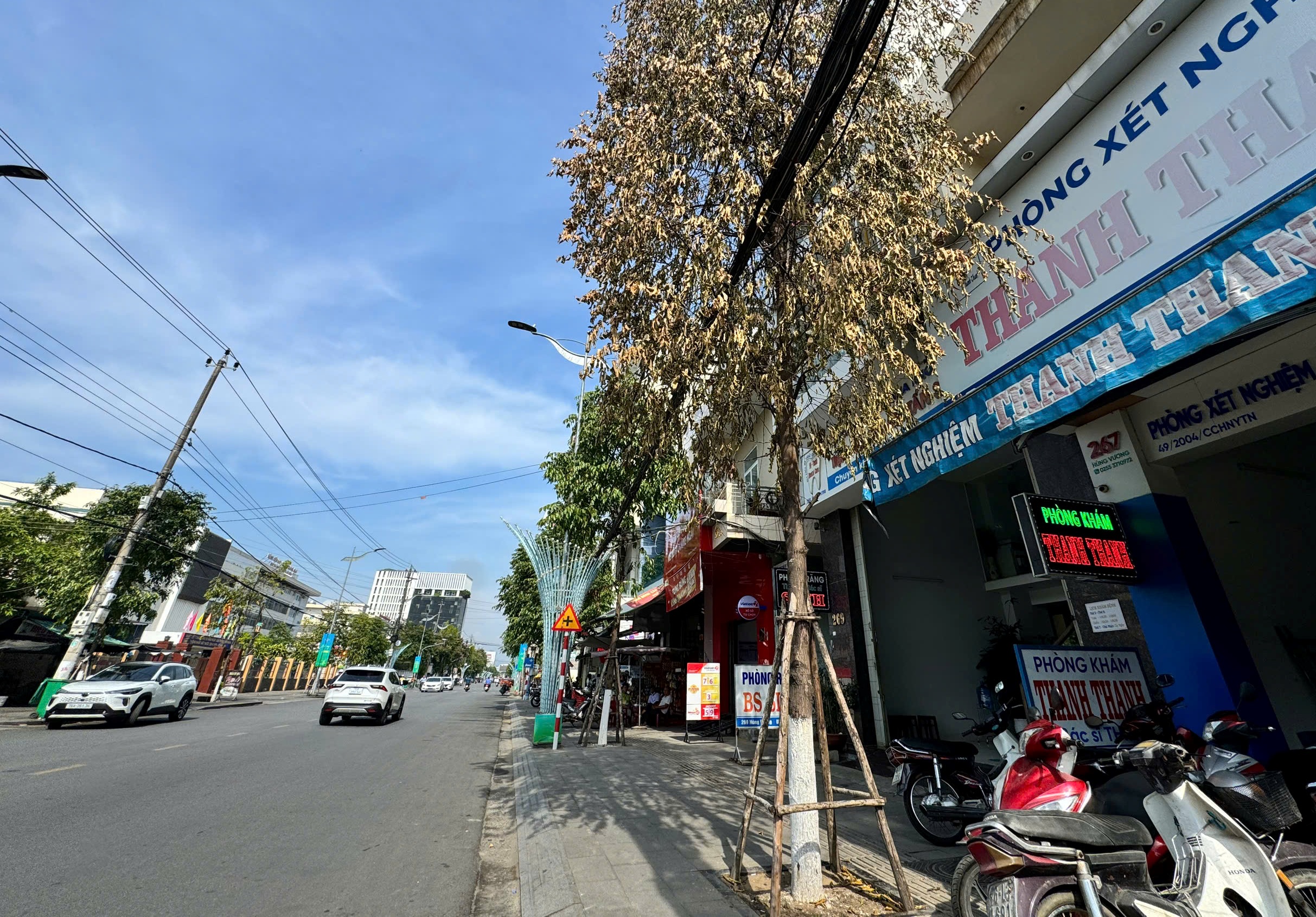 “Chiều 1-5, tôi quay lại thì thấy cây sao đen trước số nhà 267 Hùng Vương rụng lá, khô toàn bộ, tốc độ chết quá nhanh. Tôi kiểm tra thì phát hiện gốc cây bị chích ở 2 vị trí, nghi ngờ ai đó đã tiêm hóa chất cực độc khiến cây khô héo chỉ sau 2 ngày”, anh Vũ nói.