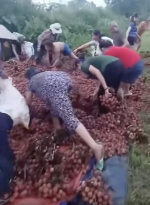 Hà Nội: Xe tải chở vải gặp n/ạn phải cẩu đi sửa, người dân nghĩ rằng vải bị bỏ nên đã “hôi” hết 4 tấn khiến tài xế khóc ròng