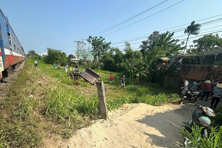 Hiện trường vụ va chạm giữa tàu hỏa và xe công nông, 3 người t.h.ươ.ng vo.n.g