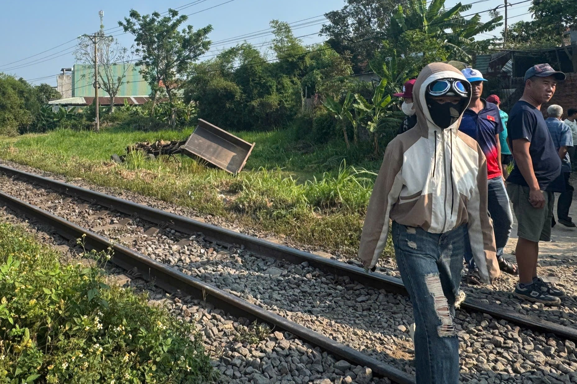 Xe công nông được cho là đã băng qua đường dân sinh tự mở rồi va chạm với tàu hỏa. Ảnh: HD