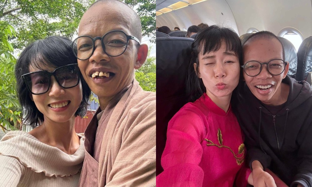 Hình ảnh lan truyền trên mạng được cho là ông Thích Nhuận Đạt có mối quan hệ tình cảm với cô Tym.