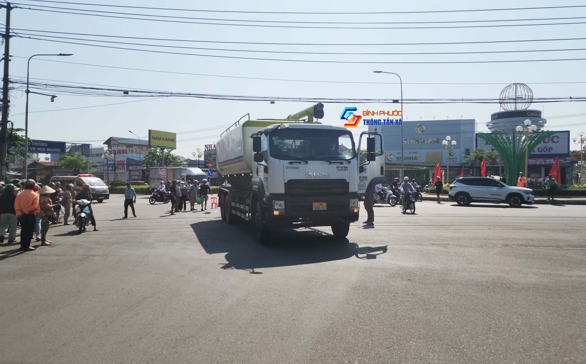 Tại phường Bình Phước xảy ra vụ tai nạn giữa xe bồn và xe máy khiến 1 người tử vong.